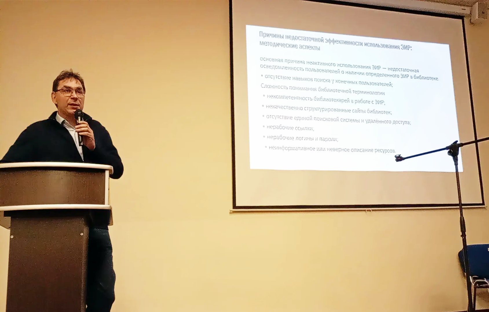 Директор ЦНМБ Борис Родионович Логинов выступил с докладом «Медицинские библиотеки в федеральном проекте «Развитие научно-технических библиотек». Помимо методического и философского осмысления места и структуры медицинской библиотеки в государственной системе научно-технической информации Борис Родионович предложил новую парадигму библиотек БИБЛИОТЕКА КАК ОБСЕРВАТОРИЯ КОСМОСА ЗНАНИЙ.
